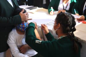 Agregó que se pedirá que la madre o padre acompañe a su hija o hijo en el momento de la aplicación, con una carta de consentimiento firmada y especificando si es la primera o segunda dosis; el comprobante de primera dosis si es el caso y su CURP actualizada; para que puedan estar en vigilancia los 15 minutos posteriores a la aplicación y en caso de sentir algún malestar se puedan ir a sus domicilios.