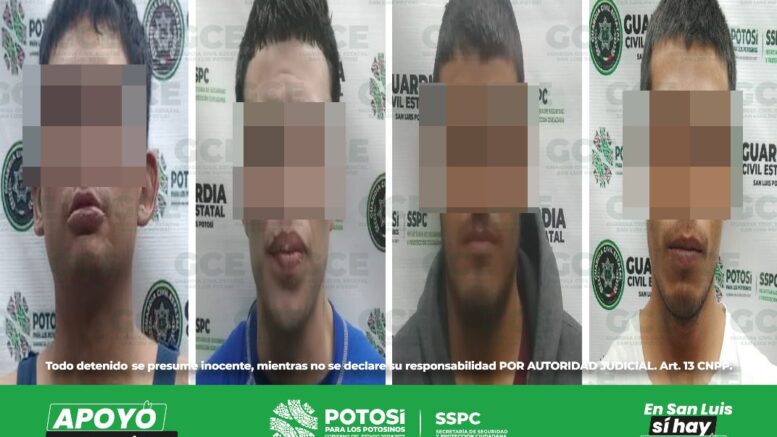 S.L.P.- Dentro de las acciones para disuadir hechos que vulneren el derecho a una vida libre de violencia, agentes de la Guardia Civil Estatal (GCE) detuvieron a cuatro hombres, luego de las denuncias de sus familiares, quienes indicaron haber sido víctimas de violencia intrafamiliar; el oportuno actuar de las autoridades, permitió salvaguardar la integridad de las personas afectadas.