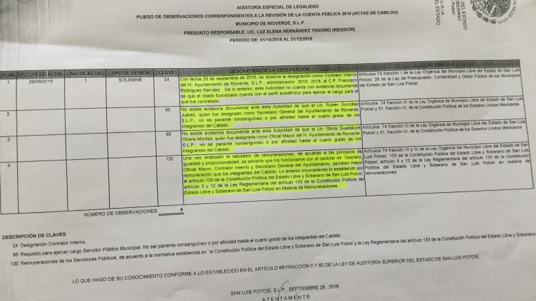 La primera observacion es en referencia ala designación como contralor interno a Francisco Rodríguez Narváez de quién no se cuenta con evidencia alguna ni con el perfil académico para ejercer el cargo , de igual forma en su segunda observación no existe evidencia documental de que el secretario del ayuntamiento Rúben González Juárez no es pariente cosanguineo o por afinidad de la sindico suplente (hermana) directo o cualquier integrante del Cabildo.