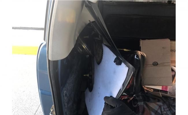 Como resultado, en el ángulo posterior derecho de la cabina fue localizada cinta adhesiva, misma que ocultaba un pegamento tipo espuma, lo cual no coincide con el diseño original del vehículo, por lo que fue asegurado.