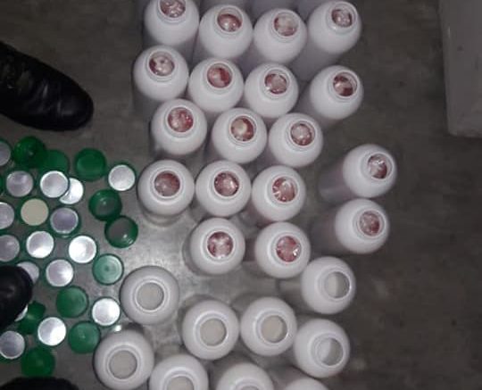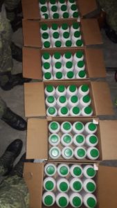 Tras realizar una revisión aleatoria en el centro de distribución regional del aeropuerto a las 03:00 horas, con apoyo de un binomio canófilo, se localizaron dentro de seis cajas de cartón, procedentes de Culiacán, Sin., 72 frascos de plástico color blanco, los cuales contenían un polvo blanco granulado con las características de la metanfetamina (cristal), con un peso total de 36 kilogramos aproximadamente.