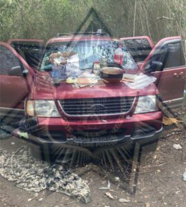Fue en este sitio en donde los elementos policiales y militares aseguraron armas largas, cargadores, cartuchos útiles de diversos calibres, dos vehiculos, equipo táctico y equipo de radiocomunicación.