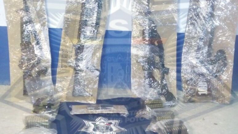 TAMPAMOLON, S.L.P.- Derivado de los operativos coordinados entre elementos de la Secretaría de Seguridad Pública del Estado (SSPE) y SEDENA, se aseguraron armas, equipo táctico y vehículos en un predio.
