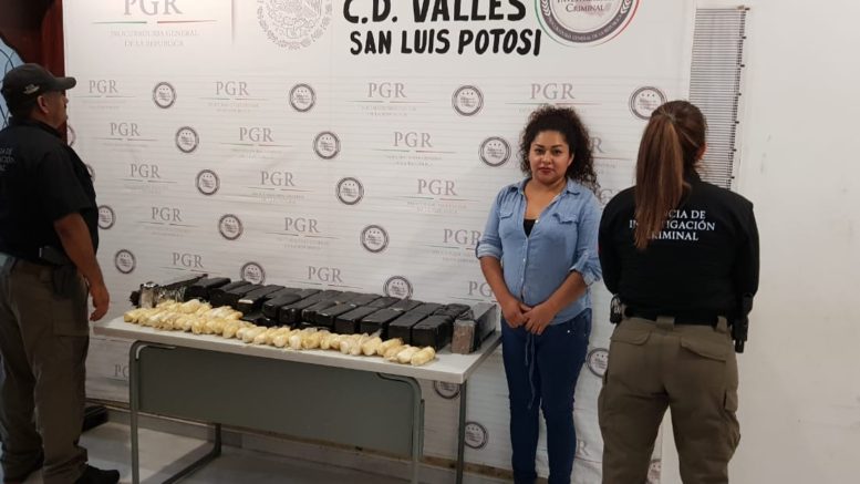 Los efectivos detuvieron a una mujer originaria de Nuevo León de nombre Karla N. a quien le decomisaron un gran cargamento de droga.