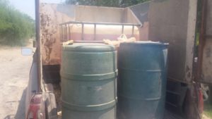Al realizar una inspección, se verificó que el bidón de mil litros y los dos tambos de 200 litros, iban llenos de gasolina, por lo que fue detenido quien se identificó como José C., de 46 años de edad.
