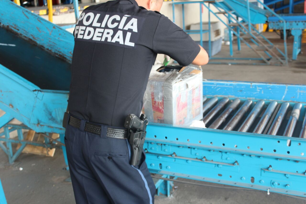 San Luis Potosí.- Policía Federal asegura más de tres mil pastillas de medicamento controlado y un arma corta en empresa de mensajería en San Luis Potosí