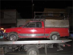 Como parte del trabajo de vigilancia que los Policías Estatales realizan sobre la carretera federal número 70, en el kilómetro 07+520 a la altura de la comunidad Los Gómez, localizaron un vehículo Mazda pick-up, color roja, modelo 1987, con placas del Estado de México, mismo que cuenta con reporte de robo del 28 de mayo de 2017. Fue hallado sin acumulador ni equipo de sonido.