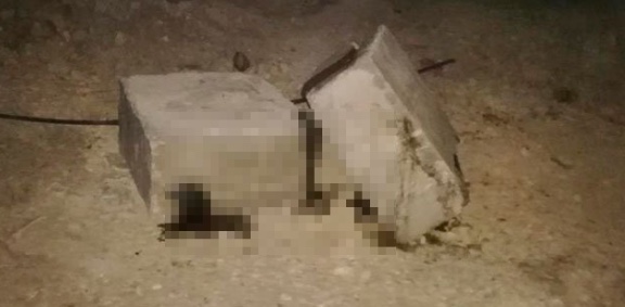 Los hechos se registraron a media noche del viernes cuando se reportó el hallazgo de tres bloques de concreto de diferentes tamaños a los cuales les escurría un líquido hemático,.