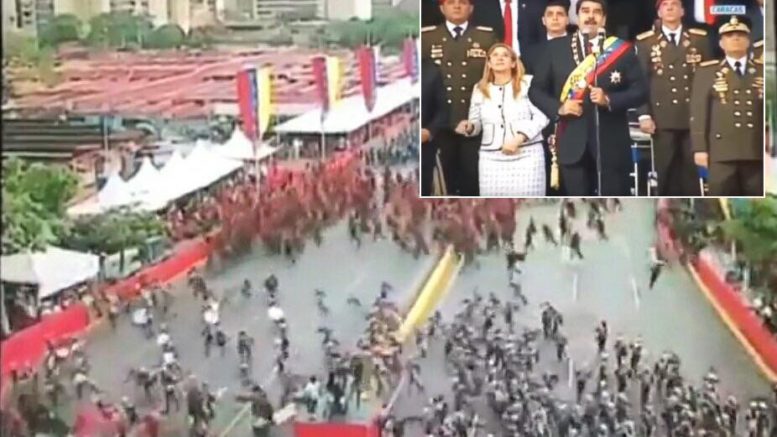 El Presidente del mencionado país intervenía con un discurso de cómo Venezuela se recuperaría en su economía cuando fue interrumpido por unos ruidos en el aire, eran drones que según algunos tenían explosivos, el evento, un desfile militar, era transmitido por la Cadena Televisa oficial del país.