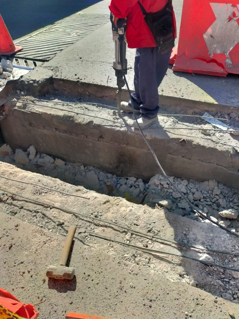 Tras la recepción del reporte, se desplazaron al lugar las cuadrillas operativas correspondientes para delimitar el área de intervención y garantizar la seguridad de peatones y automovilistas, mientras se realizan las adecuaciones necesarias para la colocación de las nuevas piezas. Durante la inspección técnica se detectó que las rejillas existentes ya no contaban con anclaje, lo que representaba un riesgo para la circulación.