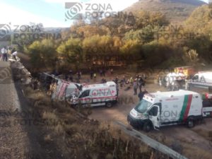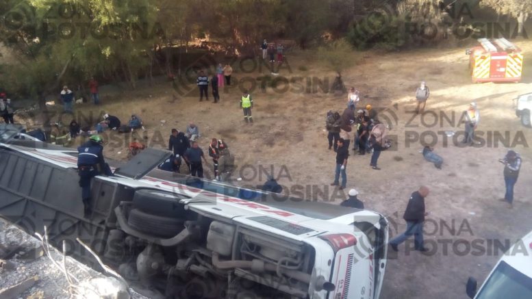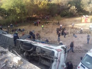 Hasta el momento y como información preliminar debido a que aún se realizan labores en el lugar donde se accidentó un autobús de pasajeros que cayó de un puente en Santa María del Río, SLP, la Fiscalía General del Estado confirma 5 personas fallecidas, entre ellas, 2 menores y 3 adultos.