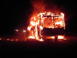 El autobús fue consumido por el fuego un vehículo de transporte de personal. el automotor, quedo convertido en un montón de chatarra.