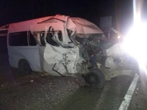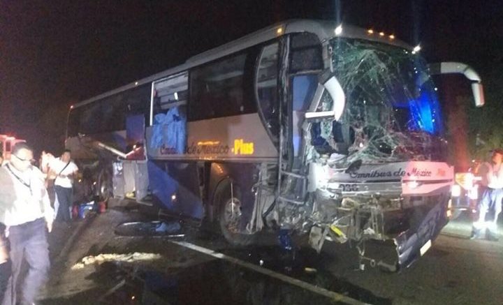 Los hechos se reportaron cuando una camioneta Nissan tipo Urvan, pretendía rebasar, invadiendo el carril e impactando de frente contra autobús de la línea Omnibus de México.