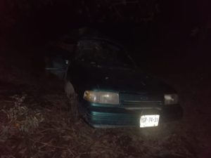 Se informó que un vehículo marca Ford Topaz color verde, de modelo atrasado, se salió del camino y chocó contra un árbol, desconociendo quién lo conducía o cuántas personas viajaban a bordo, pues la unidad fue encontrada abandonada