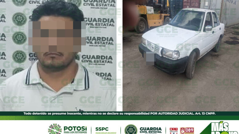 Villa de Reyes, S.L.P.- Oficiales de la Guardia Civil Estatal (GCE) detuvieron a un automovilista, por el probable delito de conducir un automotor con placas sobrepuestas.