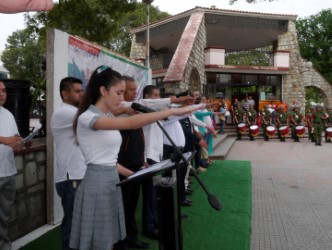 Durante la ceremonia se llevó a cabo primeramente los honores para el despliegue de banderas y el Comandante del 36° Batallón de Infantería Coronel Gorgonio Escalante Ramírez hizo el abanderamiento a las escoltas presentes a las que les encomendó su compromiso de lealtad y patriotismo para con el lábaro patrio que simboliza la independencia, el honor, las instituciones y la integridad de nuestro territorio. Y les añadió “la Patria confía que como buenos y leales mexicanos sabrán cumplir su protesta”.
