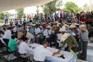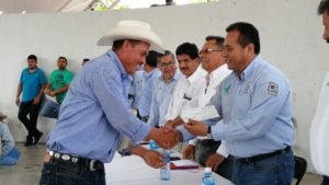 Fueron un total de 291 campesinos, los que recibieron este apoyo, en un acto que fuera encabezado por el Alcalde José Ramón Torres García, y en el cual estuvieron presentes, el Delegado de la Sedarh en la Zona Media, Álvaro Rodríguez Rodríguez; el Coordinador de Fomento Agropecuario de la Secretaria de Agricultura y Desarrollo Rural, Reynaldo Ortega Mayo; el Secretario del Ayuntamiento, Rubén González Juárez y el Jefe del Departamento de Desarrollo Rural Municipal, Sergio Medina Hernández.