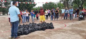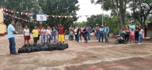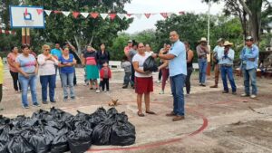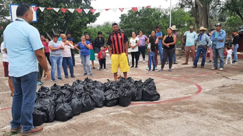 Brigada de voluntarios integrada por habitantes de la comunidad de Ojo de Agua de San Juan que combatieron a pie tierra el incendio forestal registrado sobre esa área, fueron beneficiados con la entrega de despensas por parte del presidente municipal José Alfredo Pérez Ortíz, acudiendo en su representación el director de Protección Civil Jorge Armando Ruíz Barragán.