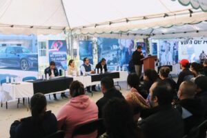 Por su parte, el gerente de Entrenamiento de BMW, Carlos García Siller destacó que Villa de Reyes es la casa de BMW y la confianza que habló el alcalde Daniel Lagunas es mutua, por eso la sinergia que se mantiene es porque la educación es clave de esta alianza entre empresa, sector educativo y gobierno, por lo que esta jornada de reclutamiento es parte de las estrategias que se tienen contempladas, ya que desde hace tres años que iniciaron operaciones se tiene la producción de tres modelos que son: Serie 3, Serie 2 y ahora el M2, e incluso de parte del plantel Conalep de Villa de Reyes se incorporaron las primeras 18 mujeres estudiantes al Modelo de Formación Dual, ya que durante cinco años que se implementa se han incorporado varios de los egresados a esta planta ubicada en el Parque Industrial Logistík segunda sección.