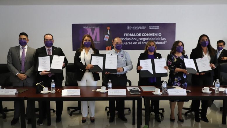 En el marco del Día Internacional de la Mujer, este 8 de marzo, el Ayuntamiento de San Luis Potosí firmó el “Convenio para la Inclusión y Seguridad de las Mujeres en el Ámbito Laboral”, con la Asociación Mexicana de Mujeres Empresarias (Amexme), con la presencia de representantes del Cabildo y coordinado por la Instancia Municipal de las Mujeres.