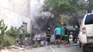 bomberos de la ciudad lograron sofocarlo el incendio que provocó el agresor para evitar ser detenido fue encontrado calcinado en el interior del inmueble .