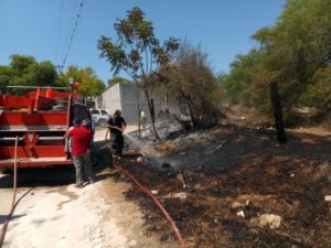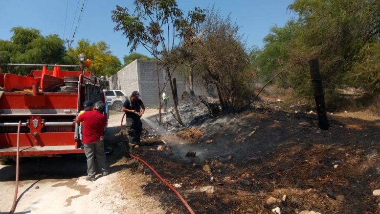 Un reporte ciudadano de incendio de pastizal llegó al Cuerpo de Bomberos y Protección Civil, quienes acudieron al llamado para sofocar las llamas que provocó el intenso calor, la hierba seca y la basura a los alrededores; el siniestro no pasó a mayores.