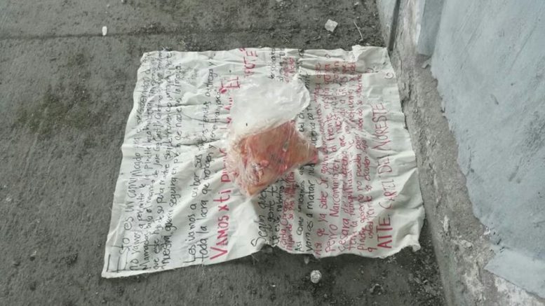 Agentes policiacos descartaron la posibilidad de que fueran restos humanos, correspondiendo a un animal las partes localizadas, específicamente a un cerdo.Testimonios refieren la presencia de un mensaje escrito, desconociendo más especificaciones.