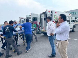 Explicó que gracias al esfuerzo y la coordinación interestatal, los dos infantes arribaron esta tarde al Aeropuerto Internacional “Ponciano Arriaga” procedentes de Durango, y se les trasladó en ambulancias de los Servicios de Salud de Gobierno del Estado. Durante el traslado también se contó con el apoyo de elementos en moto patrullas de la Guardia Civil Estatal para guiar a las unidades, e internar a ambos menores en la Unidad de Atención a Quemados del Hospital Central “Dr. Ignacio Morones Prieto”.