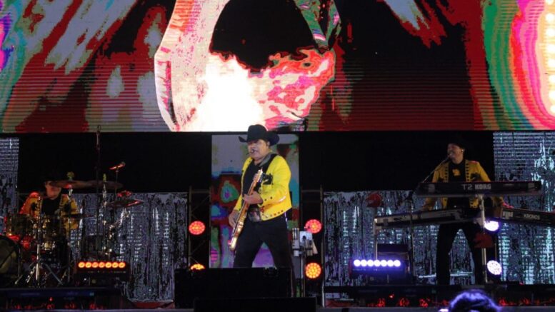 El grupo Bronco, “reventó” con un lleno impresionante el escenario del Teatro del Pueblo, en el primer domingo de la Feria Nacional Potosina. Lupe Esparza, vocalista de la legendaria agrupación, abrió su presentación con el tema “Adoro”, una de las más queridas por el público, que puso a cantar y bailar a los miles de asistentes en la noche.