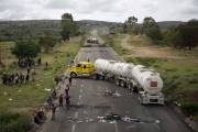 La inseguridad y el asalto a camiones ha provocado que no se surtan los productos en Oaxaca. Imagen de los bloqueos carreteros que hay en Oaxaca. (Agencias)