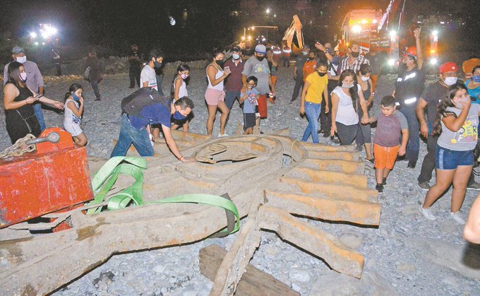 El hombre de 40 años buscaba chatarra de acero para vender por kilo, pero en cambio descubrió entre la tierra a la gigantesca estructura metálica que hace 10 años fue arrancada de su base por el huracán Alex y quedó sepultada unos 150 metros adelante, bajo toneladas de piedras y lodo.