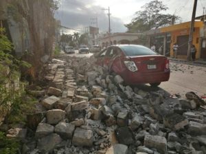 Según datos de vecinos el operador de una máquina retroexcavadora estaba limpiando un predio particular y golpeó por accidente la barda, provocando su caída destrozando un vehículo estacionado marca Chevrolet Sonic color guinda, de modelo reciente además quebró un poste de Telmex.