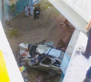 Los hechos se registraron la el el km 32 de carretera Zacatecas, el conductor de una camioneta caravan , perdio el control hacia su izquierda y cayó al vacío de un puente.