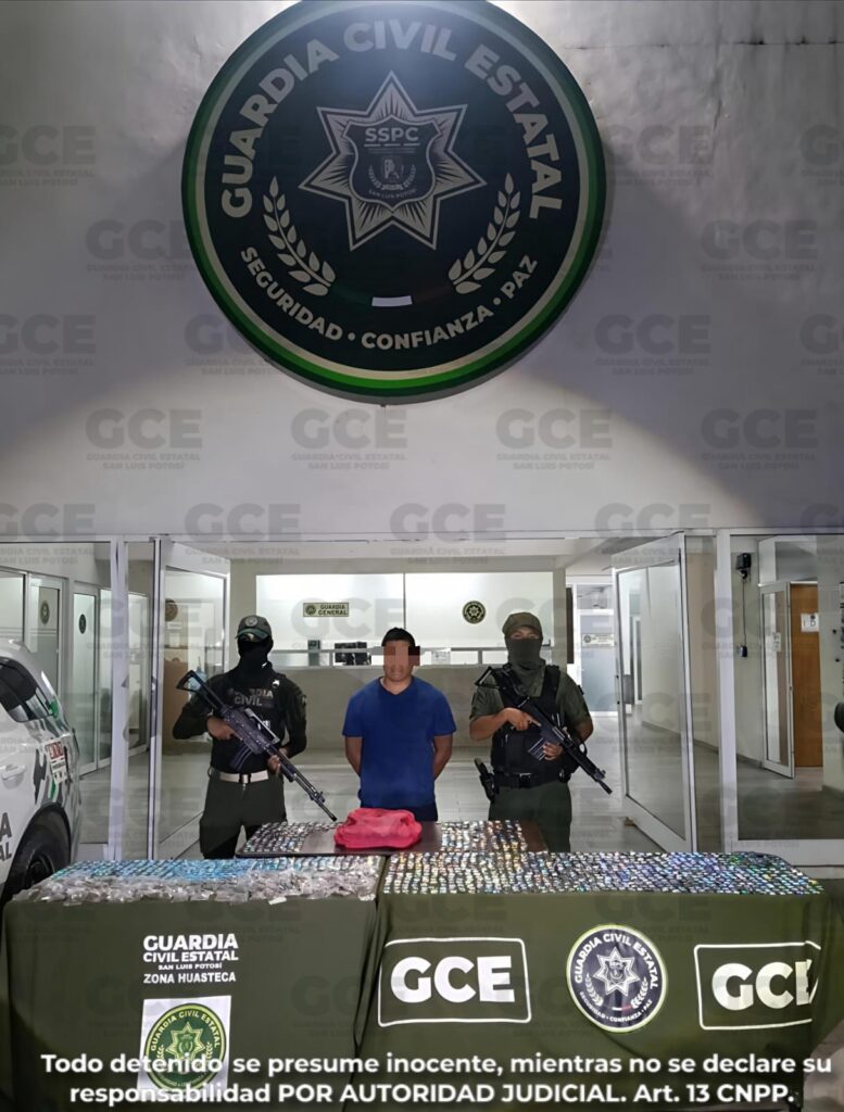 AXTLA DE TERRAZAS, S.L.P. – En el marco de los operativos de inteligencia y vigilancia permanente que la Guardia Civil Estatal (GCE) despliega en la región Huasteca, se logró la captura de un hombre señalado por presunta distribución de estupefacientes al menudeo.