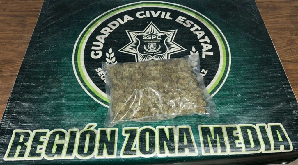 La captura tuvo lugar en plena zona centro del municipio de Rioverde, durante un despliegue táctico de la Base de Operaciones Mixtas Interinstitucional (BOMI). Al momento de su detención, al joven le fue asegurada una bolsa con hierba seca en color verde, con características similares a la marihuana y con un peso aproximado de 525 gramos.