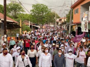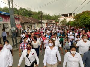 La multitudinaria caminata en la que la abanderada morenista a la gubernatura estuvo acompañada de Esperanza Cedillo, la aspirante por el partido de Regeneración Nacional a la presidencia municipal, concluyó en el centro de Aquismón en donde ya de manera breve la doctora Rangel Martinez dirigió un mensaje a los habitantes de este municipio huasteco del estado.