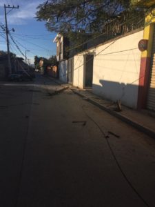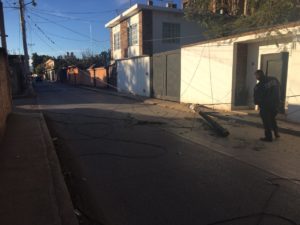 Vecinos del lugar en prolongación de centenario del Refugio, negándose a que se le levante él acta de entrevista, indica que el solo quiere que levanten el poste de Telmex, así mismo asiendo a un lado los cables que obstruyen la vialidad.
