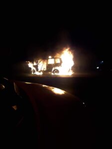 Un vehículo se incendio la noche del jueves tras chocar por alcance contra otro vehículo , incendiándose en la carretera Rioverde .