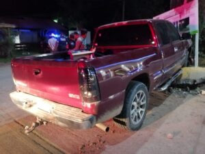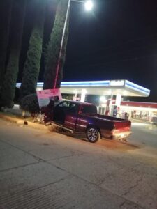 La unidad que terminó con severos daños y que terminó impactada de frente contra el inicio del camellón, dañando además un anuncio de señaletica y el poste de una luminaria, corresponde a una camioneta GMC Sierra, color guinda, placas con folio de UNTRAC 6355, la cual fué asegurada y trasladada a la pensión, siendo puesta a disposición del Agente del Ministerio Público del Fuero Común.