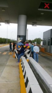 Mas de 60 personas llegaron apostándose en la zona de las casetas dejando pasar a los vehículos que por ahí transitaban, sin que se pagara la cuota de peaje.