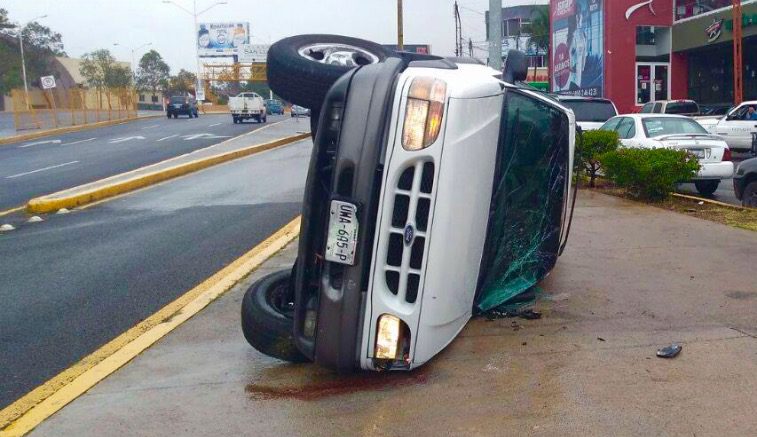 Esta mañana la velocidad inmoderada y del piso mojado género que un conductor sufriera un accidente frente al asta bandera en la zona universitaria