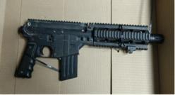 Al realizar una inspección en el vehículo marca Ford, tipo Mustang, encontraron 2 chalecos antibalas; una réplica de arma de fuego tipo sub ametralladora, 2 identificaciones de policía, 3 radios de comunicación y 2 pasamontañas.