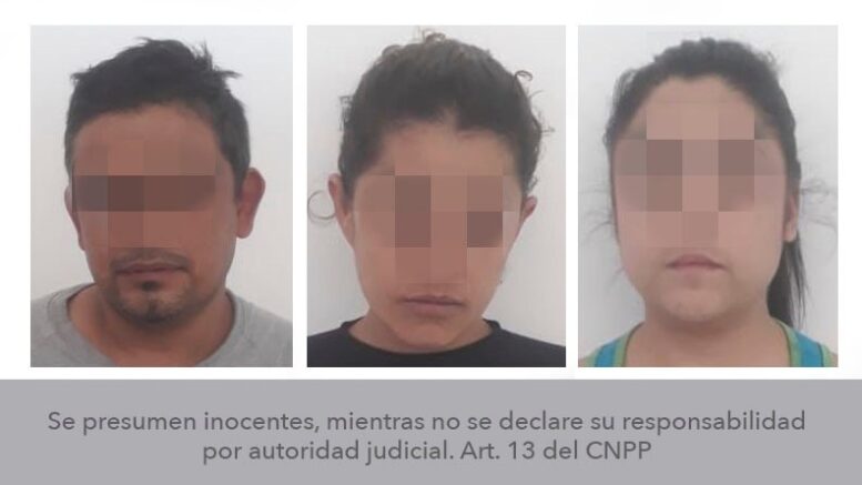 Los agentes investigadores identificaron a los probables como José Alberto “N” de 35 años, Claudia Viridiana “N” de 37 años y Janeth Alejandra “N” de 22 años de edad.