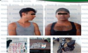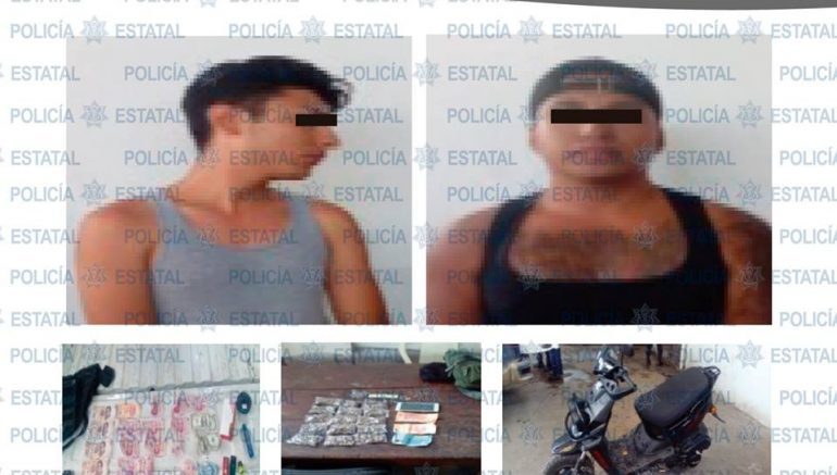 Los policías  de Seguridad Pública del Estado comisionados en la Zona Huasteca, capturaron a dos sujetos presuntos narcomenudistas en el municipio de Tamasopo, cuando viajaban en motocicleta con dosis de marihuana y más de tres mil pesos en efectivo.