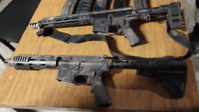 Al llegar al sitio señalado, se observaron a dos masculinos que portaban armas largas, por lo que se les pidió que las arrojaran al suelo, quienes, al verse superados en número, optaron por obedecer, rindiendose ante las órdenes de los elementos.