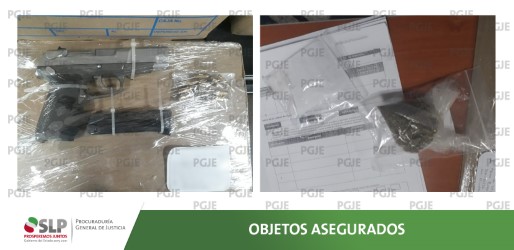 - SGS. – Policías de la Procuraduría General de Justicia de San Luis Potosí (PGJSLP), llevaron a cabo el aseguramiento en flagrancia de un hombre que fue sorprendido con un arma de fuego, cartuchos útiles y droga en el municipio de Soledad de Graciano Sánchez.Los hechos se suscitaron cuando los agentes ministeriales realizaban funciones inherentes a su cargo en las calles San Benito y San Matías de la colonia Santa Mónica de dicho municipio y observaron a un hombre que salía de una vivienda empujando una motocicleta, pero se alcanzaba a apreciar que fajada al cinturón llevaba lo que parecía ser una pistola.