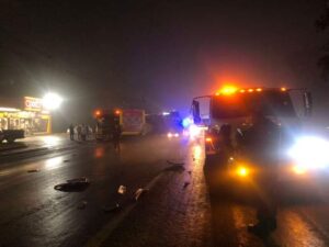 Dirección de tránsito de Soledad atiende hecho de tránsito en carretera Matehuala donde están involucrados cuatro camiones
