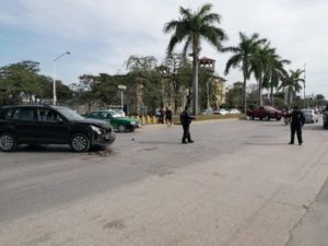 Los elementos de Seguridad Pública y Tránsito Municipal tomaron conocimiento de un choque que sucedió esta tarde en el bulevar México-Laredo y la calle Frontera, frente a los cinemas.