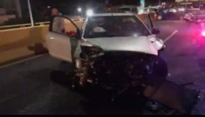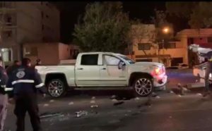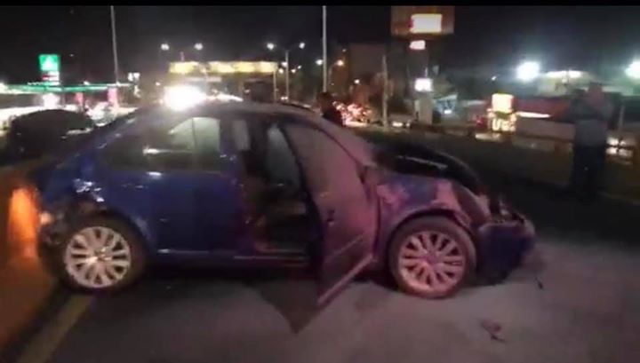 La noche de este sábado se registró una carambola sobre Salvador Nava Martínez en el puente de avenida Sierra Leona, dejando al menos tres vehículos colisionados, uno de ellos una camioneta Silverado volcada sobre la carpeta asfáltica y dos más con daños considerables