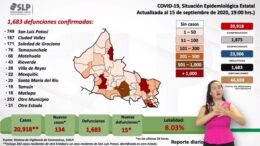 Registra SLP 134 nuevos casos de Covid y 15 muertes; ya son 20,918 contagios y 1,683 decesos
